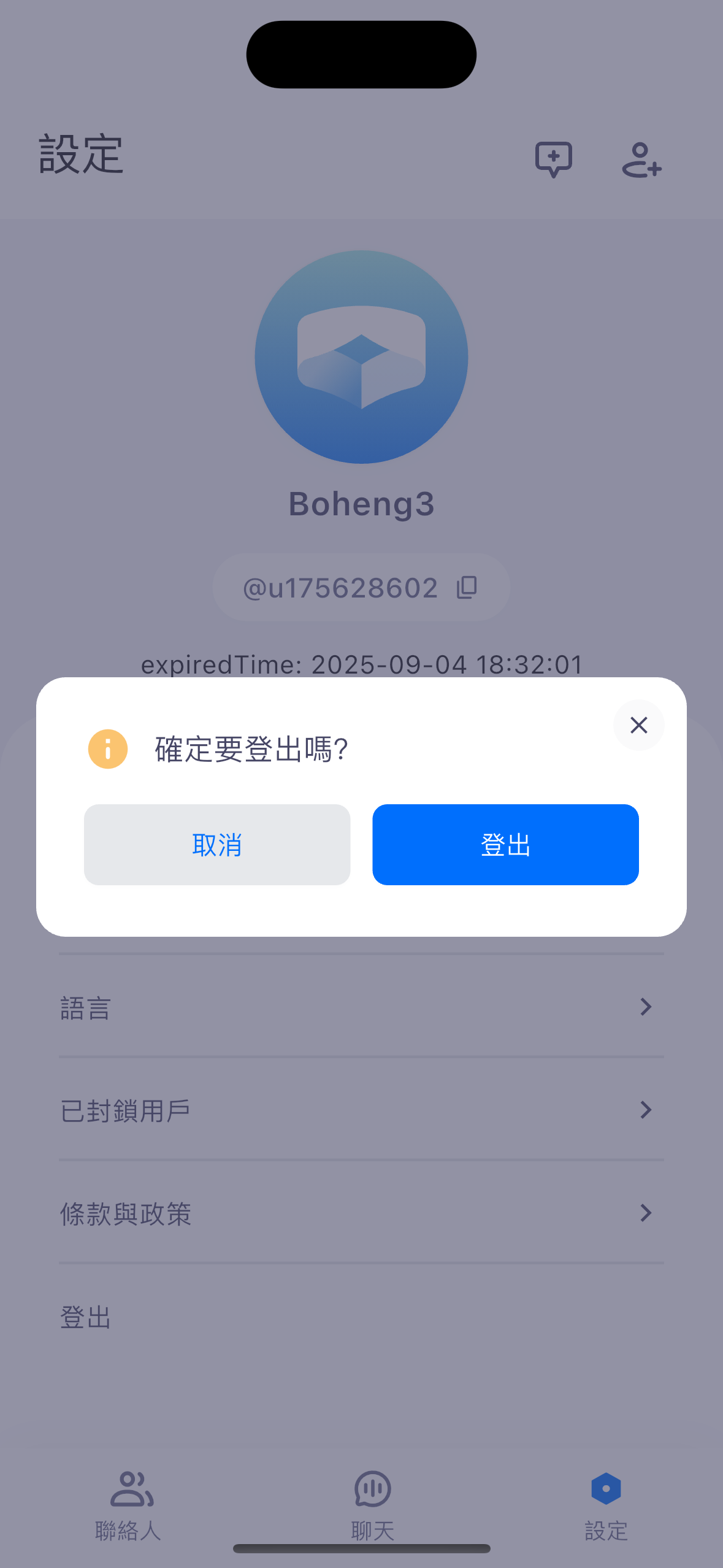 認證資訊的資料,取消下次的自動登入。 - 停止 Agora 的各種監聽事件。